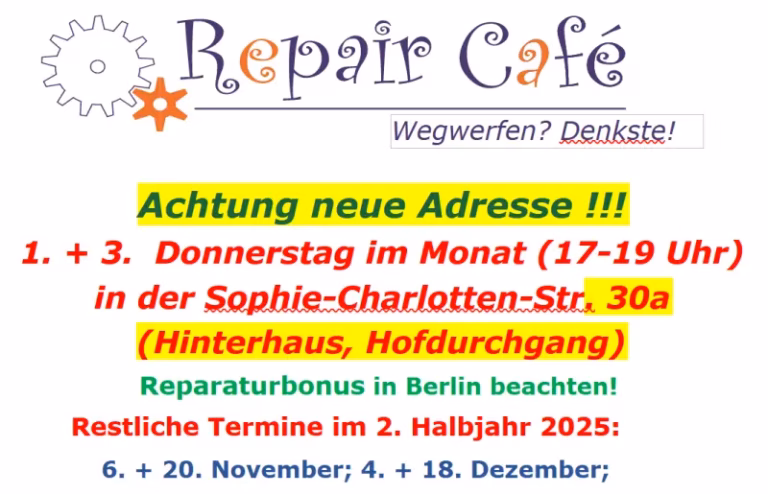 Repair Café – neue Adresse und restliche Termine 2025
